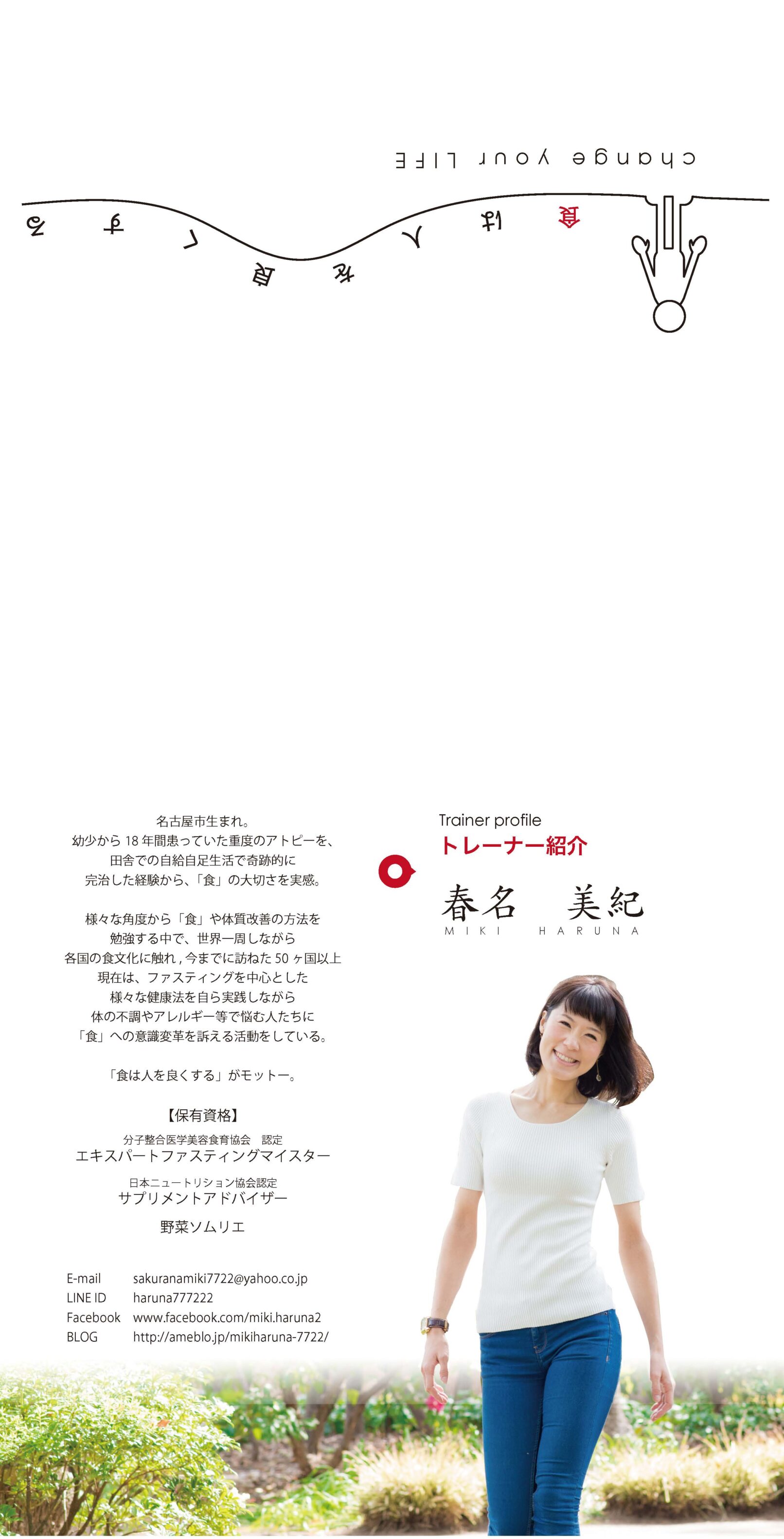 春名美紀 ファスティングトレーナー 二つ折りリーフレット作成